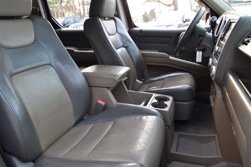 This Honda Ridgeline includes leather seats, navigation, and a CARFAX Clean Report confirming a reliable history. Practical storage and a versatile in-bed trunk expand cargo options beyond typical midsize pickups, and the roomy cab offers family-friendly space with upscale touches.